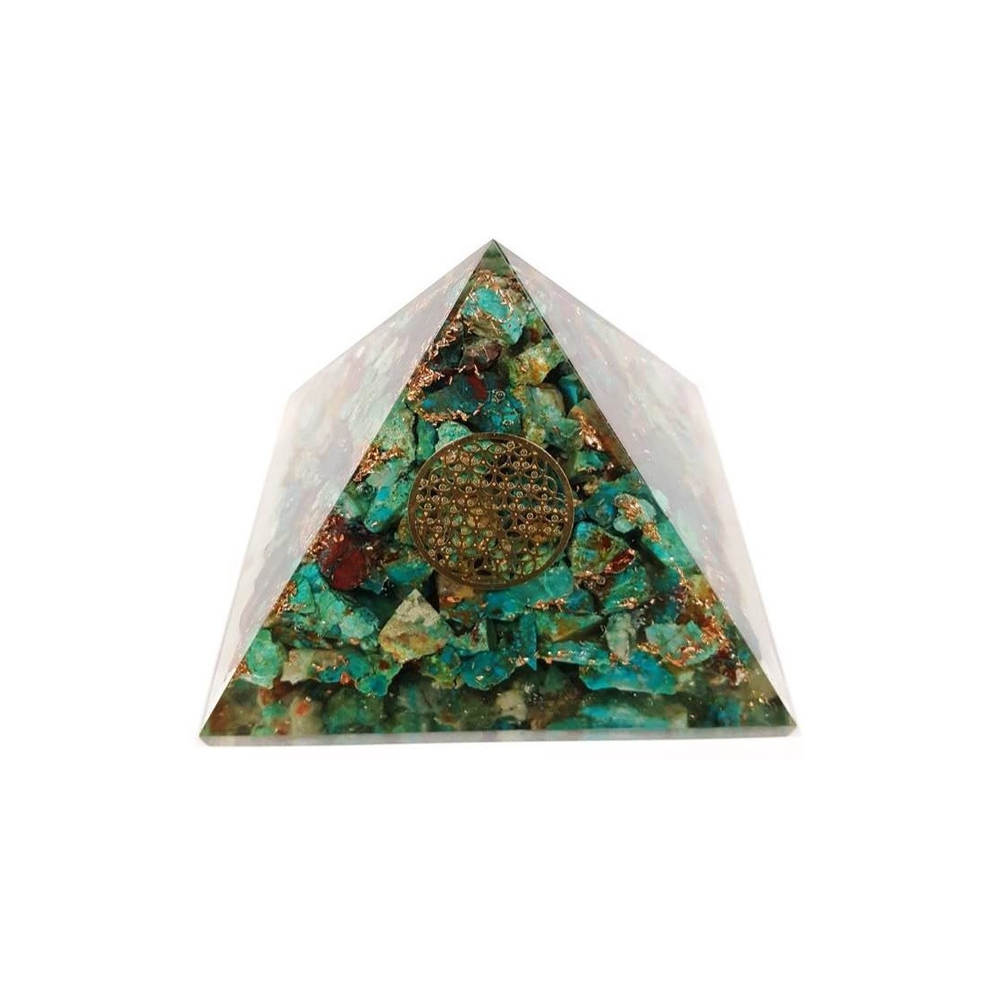 A pirâmide orgonite crisocola é uma pirâmide de orgonite, composta por resinas, pedrinhas de crisocola e cobre.