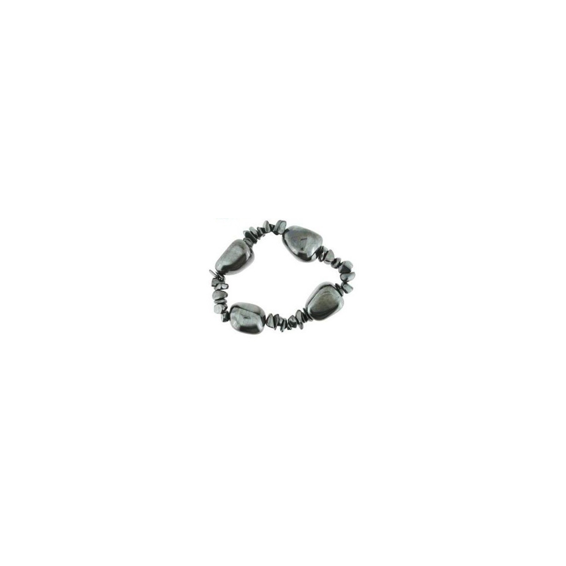 A pulseira hematite – 4 pedras é composta por várias pedras roladas de hematite de cor cinza metalico / prateado.
