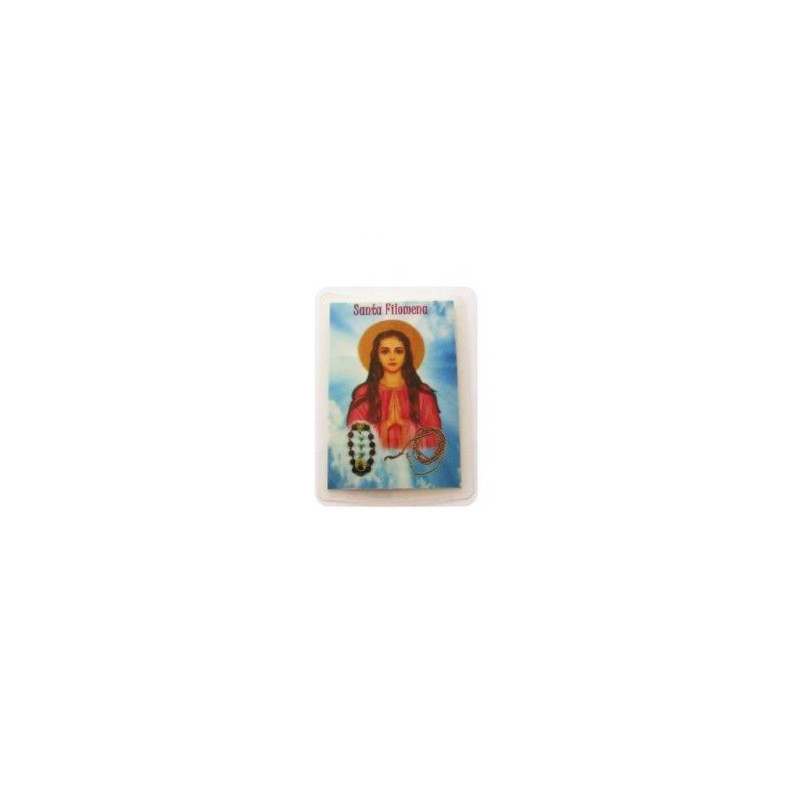 Esta pagela plastificada de Santa Filomena faz parte da nossa colecção de cartões dos santos. Este cartão traz na frente a imagem da Santa Filomena e no verso a sua oração.