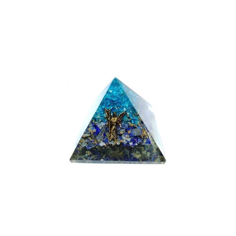 A pirâmide orgonite lapis lazuli e agua marinha é uma pirâmide de orgonite, composta por resinas, pedrinhas de lapís-lazuli e agua marinha e cobre.