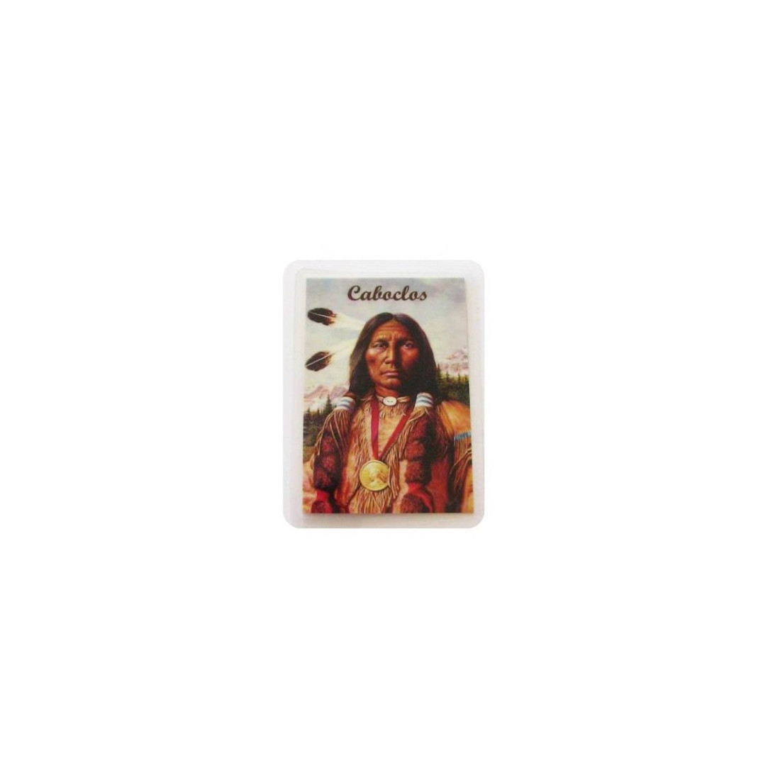 Esta pagela plastificada dos Caboclos faz parte da nossa colecção de cartões dos orixás. Este cartão traz na frente a imagem dos Caboclos e no verso a sua oração.
