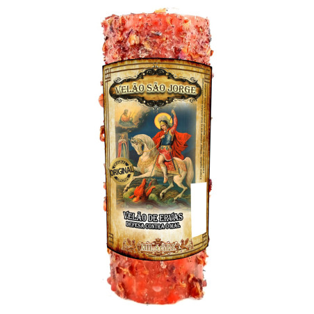 O velão de ervas São Jorge foi cuidadosa e artesanalmente preparado seguindo preceitos e formulas ancestrais afro-brasileiras, recorrendo à plantas, sementes e ervas especificas, às mais finas parafinas e ceras e aos mais naturais óleos essenciais.