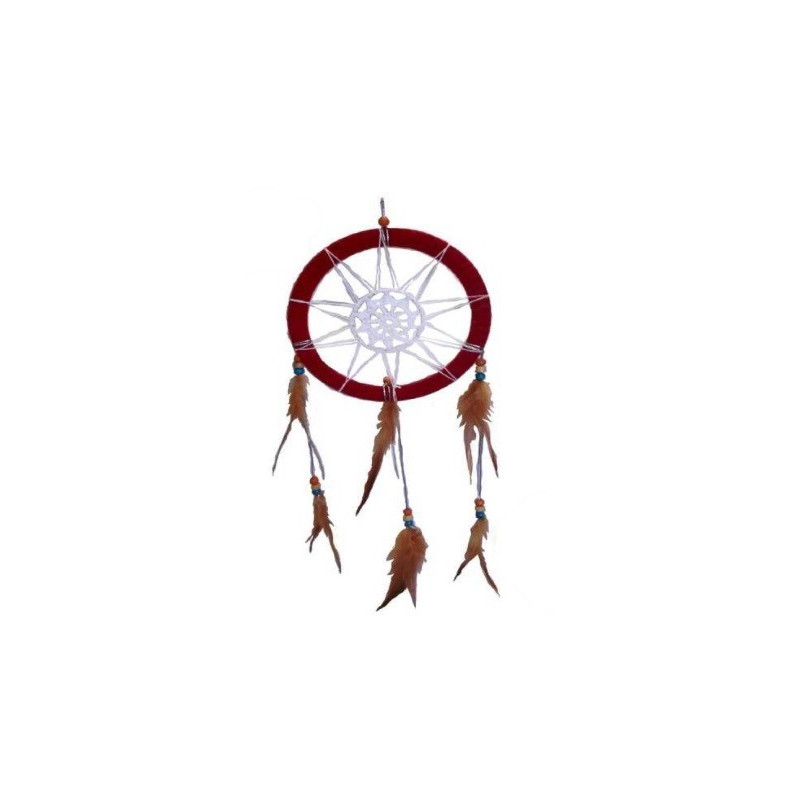 O caça sonhos vermelho teia – 16cm remete para um símbolo de protecção e para uma lenda antiga do povo Ojibwa. Com o passar do tempo, esse símbolo passou a ser usado como um objecto de decoração de protecção, de paz e de harmonia permanente.