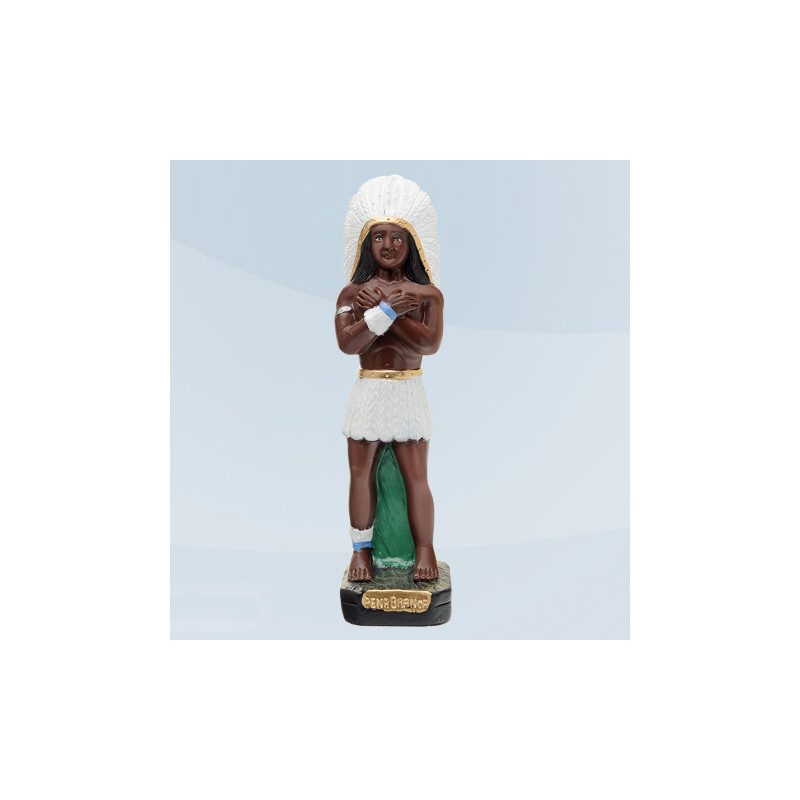 Esta imagem brasileira do caboclo pena branca faz parte da colecção de imagens afro-brasileiras da conceituada fábrica Imagens Bahia.