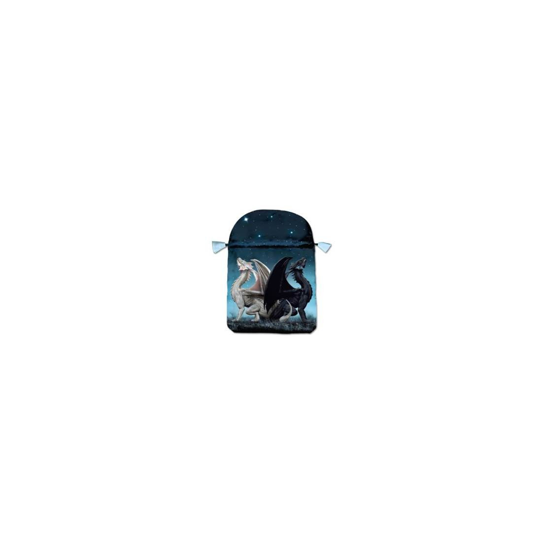 Este saco para tarot – draconis da conceituada fábrica de cartas Lo Scarabeo é feita em cetim com gráficos estampados do tarot draconis com dois dragões (um branco e um preto).