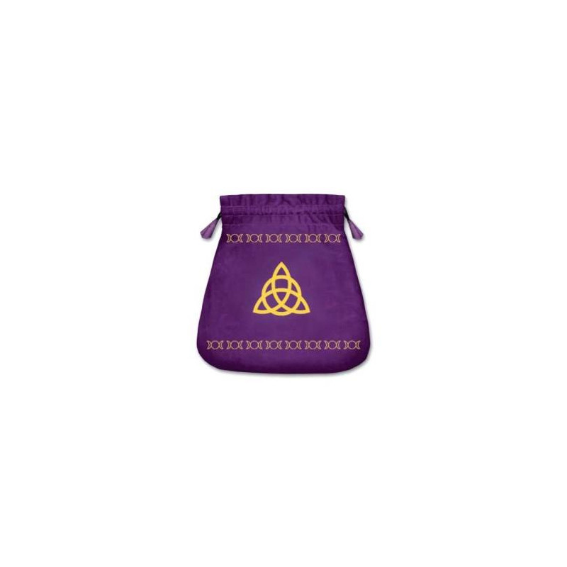 Este saco para tarot – triple goddess violeta da conceituada fábrica de cartas Lo Scarabeo é feito em veludo com gráficos bordados a dourado.