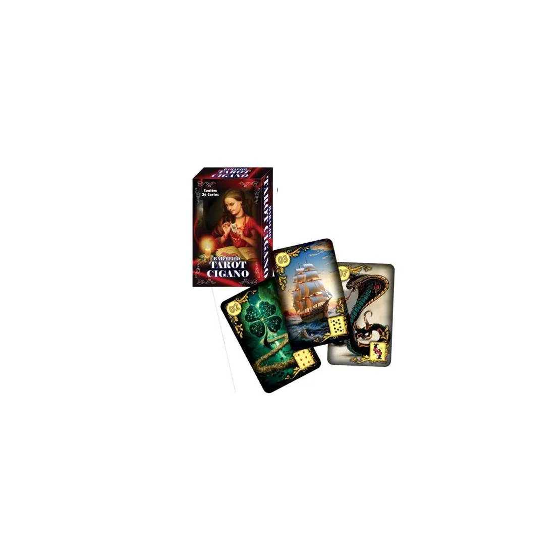 Contém 1 baralho com 36 cartas coloridas e plastificadas + folheto explicativo em português