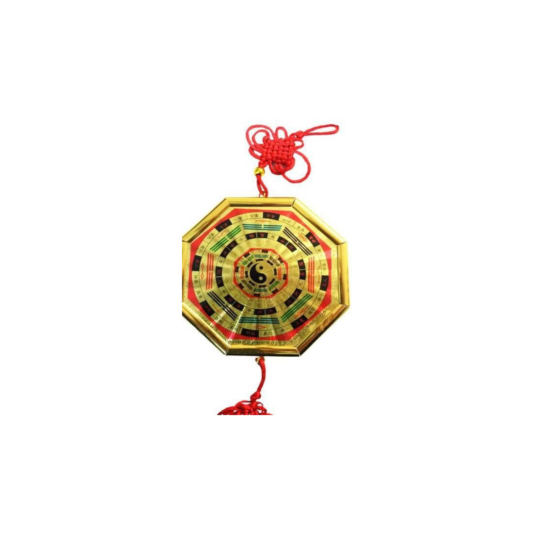 Este baguá – dupla face tem 11,5 cm x 11,5 cm x 1 cm e a representação simbólica do Yin Yang no centro. A particularidade desta peça é ter as duas faces idênticas. Desse modo, este baguá também pode ser pendurado no tecto ou no centro de uma sala.