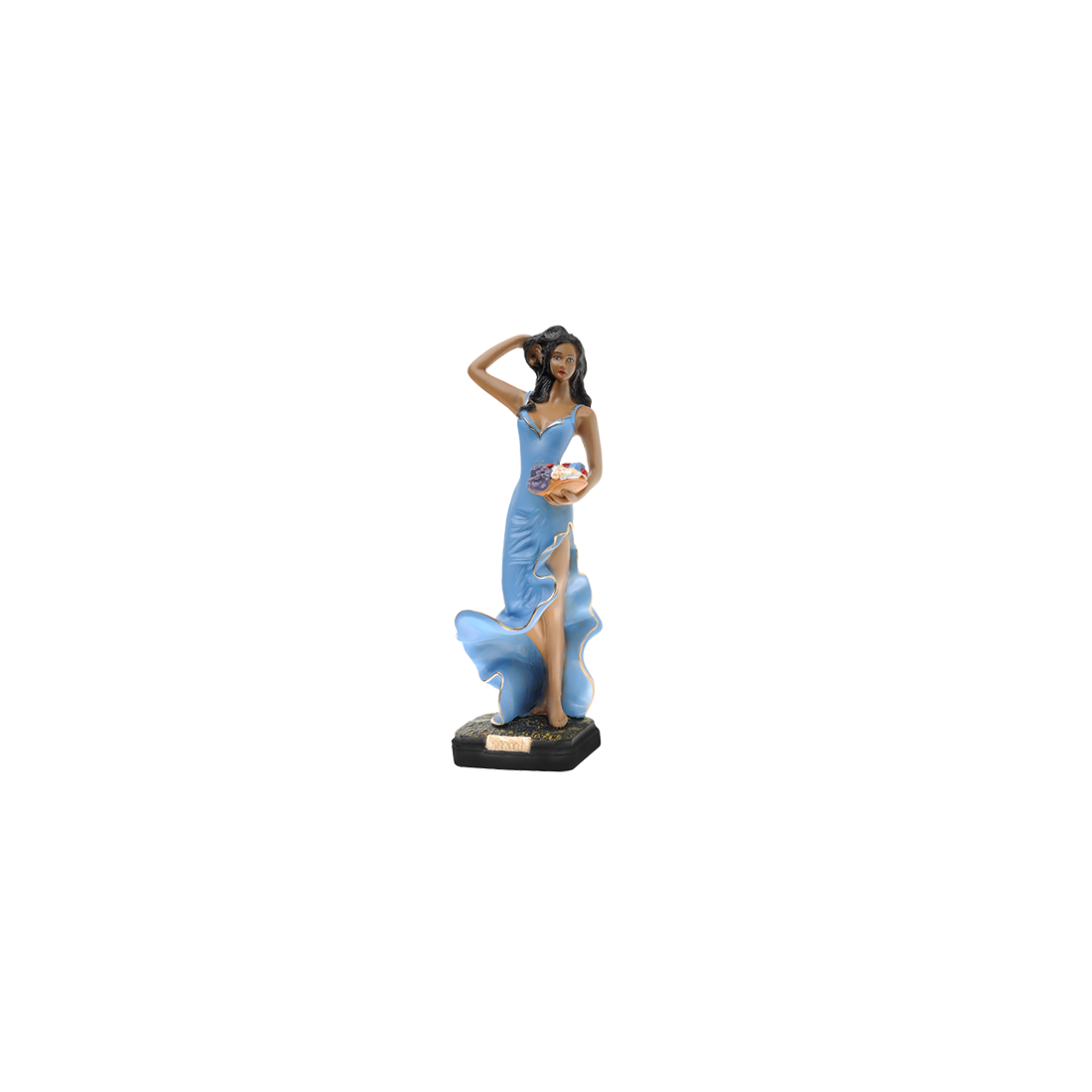Esta imagem brasileira faz parte da colecção de imagens afro-brasileiras da conceituada fábrica Imagens Bahia. Esta imagem da Cigana Sarita em gesso pertence a classe 30cm-AJ. As cores e as dimensões reais das imagens podem ser diferentes da perspectiva e da proporcionalidade apresentadas pelas definições do seu ecrã e pela nossa edição de fotografia. As dimensões atribuídas são nominais e não representam as medidas exactas da imagem, a medida apresentada representa a classificação ou o grupo de tamanho na qual se insere a imagem. Essa classe pode ter em consideração somente a altura e/ou a largura e o comprimento da estátua (ex: a representação de uma imagem de joelhos não terá a mesma altura que essa mesma imagem de pé ou de braços levantados mas será mais larga. Todas poderão pertencer a mesma classe).