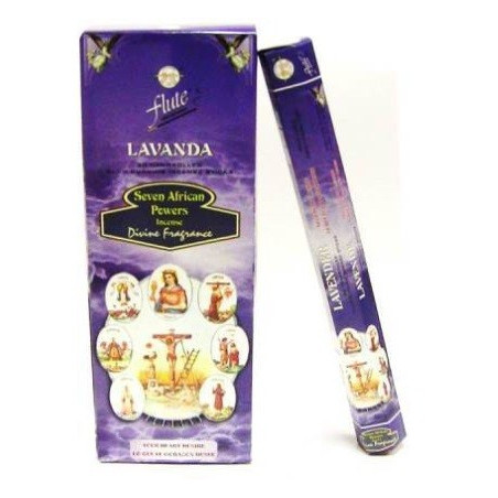 incenso 7 poderes africanos – lavanda Incenso 7 poderes africanos – lavanda em varetas da marca Flute. A sua mistura com uma base aromática de lavanda foi especialmente concebida para se relacionar e celebrar as 7 potências africanas. Este pacote apresenta-se com 20 varetas de incensos numa embalagem hexagonal (20gr). Fabricado artesanalmente na Índia seguindo métodos ancestrais e mantendo a receita da mistura e a escolha dos melhores ingredientes da sua composição pela conceituada fábrica da marca Flute.