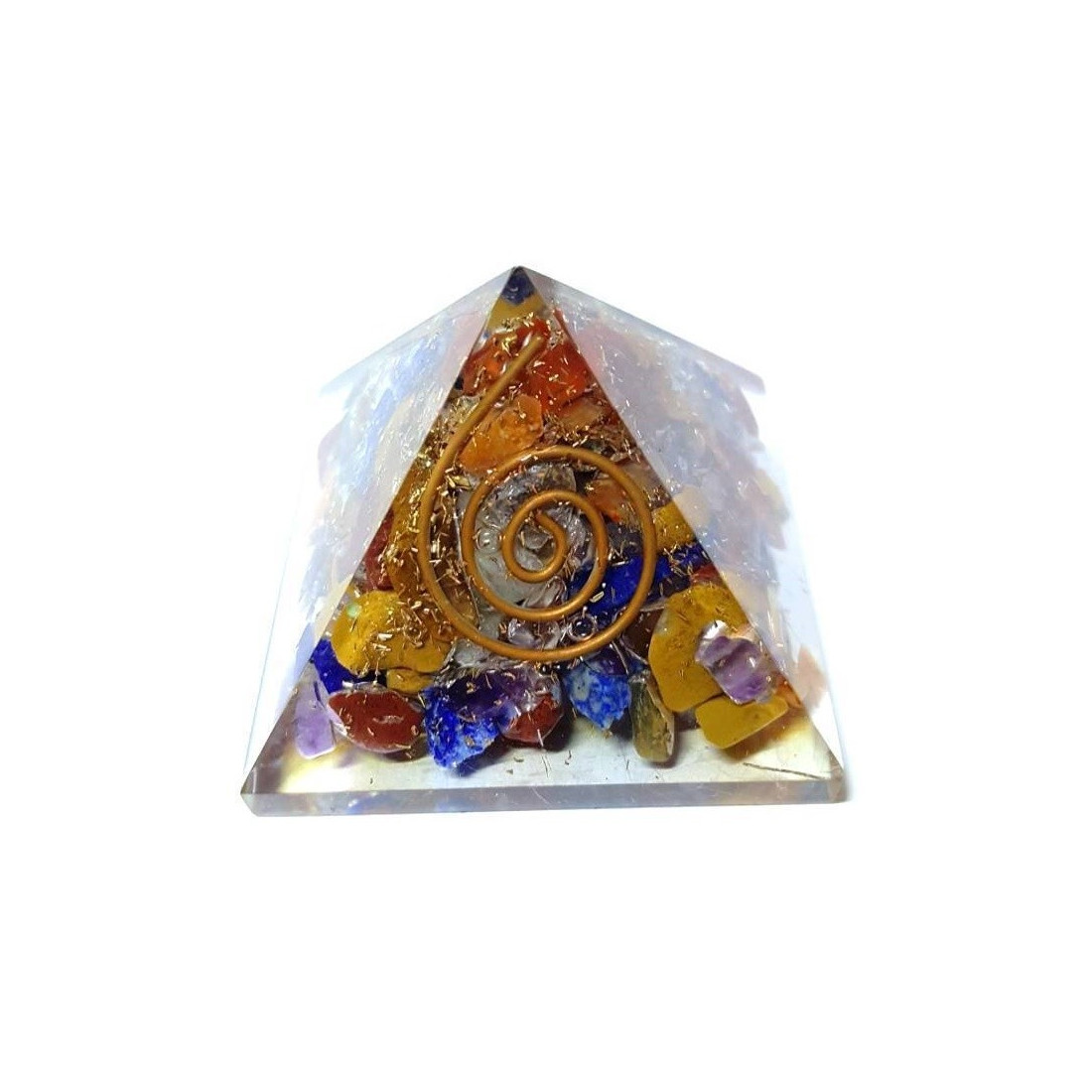 A pirâmide orgonite é uma pirâmide de orgonite, composta por resinas, cascalho de diversos cristais e cobre. Esta pirâmide orgonite tem cerca de 4 cm na sua base por cerca de 4 cm de aresta perfazendo uma altura de cerca de 3.5 cm de altura.