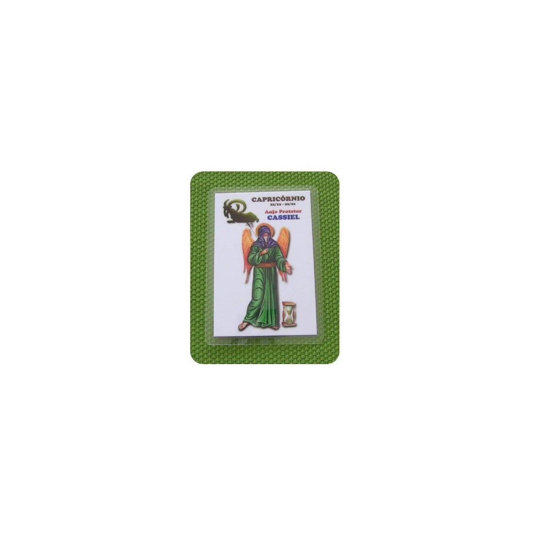 Esta pagela plastificada do signo Sagitário foi associada ao seu anjo protector e traz na frente a imagem do anjo Saquiel e no verso a sua respectiva oração.