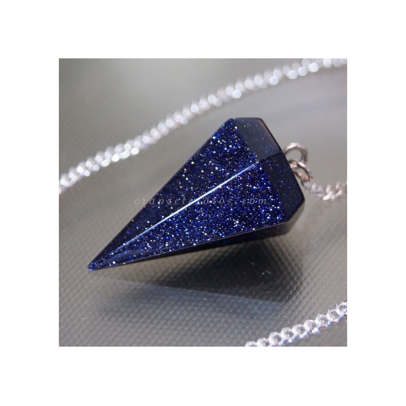 Este pêndulo Aventurina de ouro azul tem um peso aproximado de 15 gramas.