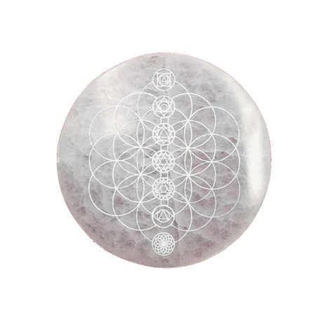 Placa Energética de Selenite (selenita) - Flor da Vida & Chakras Gravados