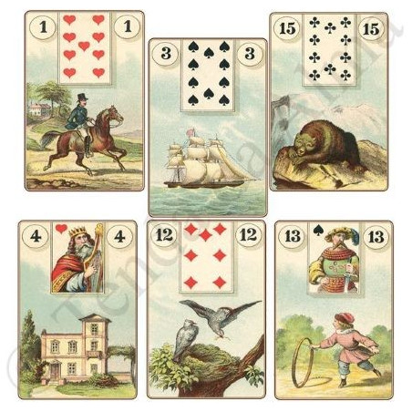 Por volta de 1840, esse jogo foi redesenhado e reduzido para 36 cartas, dando origem ao “Petit Lenormand”, um sistema adivinhatório que ainda hoje é dos mais apreciados no mundo.
