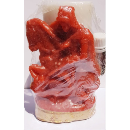 O Ritual Mágico - São Jorge é composto por um velão especial com a imagem em cera de São Jorge , uma essência de ritual e as orações específicas e as instruções de utilização. O corpo central desta vela tem 17 cm de altura por 10 cm de diâmetro com um peso aproximado de 650 gramas.