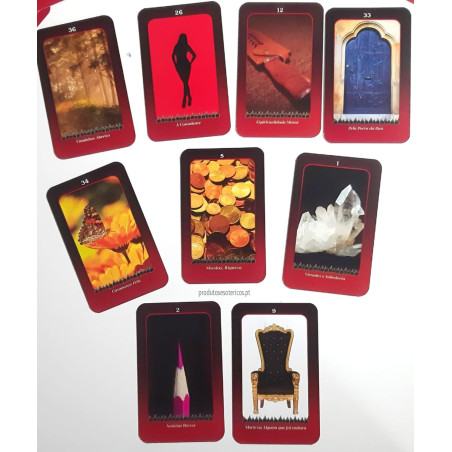 Este Tarot contém 36 cartas coloridas com manual de 24 páginas contendo o significado das cartas e maneiras fáceis de consultar.