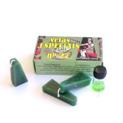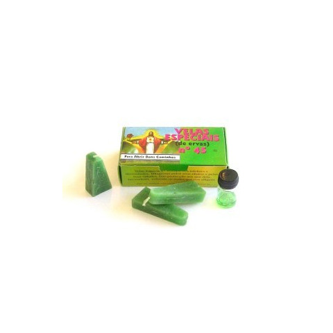 Esta vela tem aproximadamente 15 cm de cumprimento por 15 mm de diâmetro e vem acompanhada de instruções e de uma oração especifica.